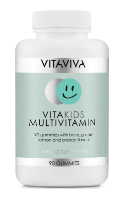 VITAKIDS MULTIVITAMIN er en velsmagende naturlig vitamin- og mineralgummi, som indeholder de mest essentielle vitaminer og mineraler til børn i alderen 2-12 år. Med kokosolie, naturlige smagsstoffer og naturlige farver fra bl.a. gurkemeje og hyldeblomstjuice.